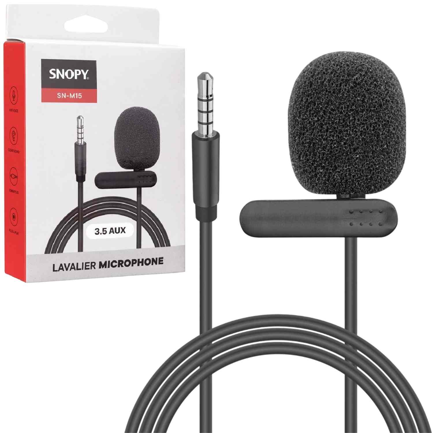 ميكروفون Snopy SN-M15 لافالير محمول بطول 1.5 متر مع وصلة AUX، عملي وموثوق للهواتف الذكية والكاميرات ومسجلات الصوت وأجهزة الكمبيوتر.