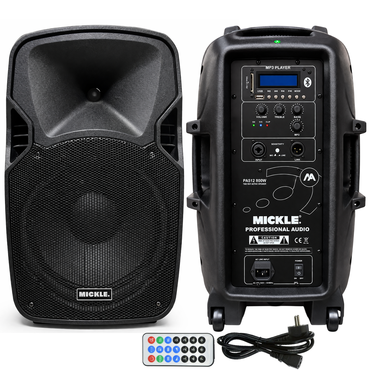 Mickle PA512 12-Inch USB/Bluetooth & XLR I/O 800W 8Ω 2-Way Active PP Cabinet Speaker