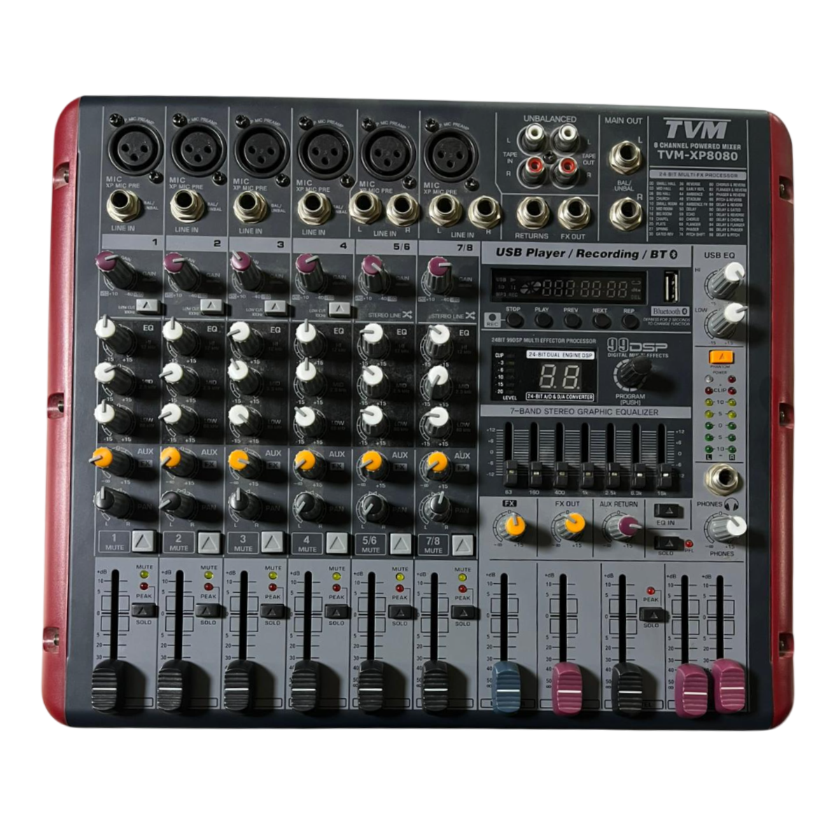 TVM TVM-XP8080 – ميكسر صوتي باور 8 قنوات مع DSP بقدرة 2×170 واط (8-Channel DSP Powered Mixer 2×170W @4Ω)