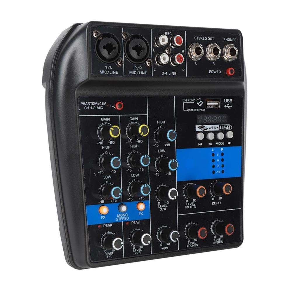 ميكسر صوتي احترافي من نوع Derrica YM-4 مزود بـ 4 قنوات، يجمع بين وظائف المزج الصوتي وكرت الصوت (USB Audio Interface) في جهاز واحد، مما يجعله مناسبًا للتسجيل والبث المباشر. يتيح توصيل الميكروفونات والآلات الموسيقية عبر مداخل XLR وLine، مع دعم Phantom Power 48V لتشغيل الميكروفونات الاحترافية (Condenser). يحتوي على تحكم كامل في الصوت من خلال: مستوى الصوت (Gain) الترددات (EQ: High / Low) التحكم في المؤثرات والصوت الرئيسي يدعم الاتصال المباشر عبر USB مع الحاسوب، مما يسمح باستخدامه كـ كرت صوت خارجي للتسجيل بسهولة وجودة عالية. مناسب لـ: التسجيل المنزلي 🎙️ البث المباشر (Streaming) البودكاست الاستوديوهات الصغيرة