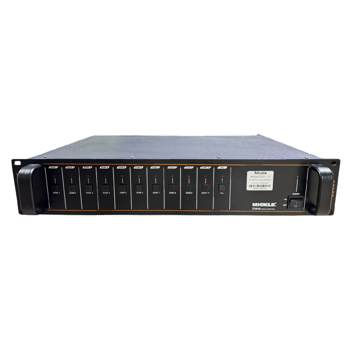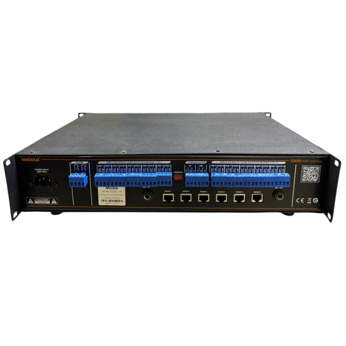 يُعد Mickle Z2020 وحدة تحكم احترافية لأنظمة النداء العام والطوارئ، تدعم 10 مناطق صوتية (Zones) وتوفر إدارة مركزية للصوت. تتيح توجيه الإعلانات إلى مناطق محددة أو جميع المناطق بسهولة، كما تتميز بإمكانية التوسعة لتناسب المشاريع الكبيرة والمعقدة. ⚙️ المواصفات دعم 10 مناطق صوتية أزرار اختيار لكل منطقة + زر عام لجميع المناطق 10 مخارج مناطق لتوزيع الصوت دعم مدخل طوارئ (Emergency Contact) تصميم Rack قياس 19 إنش (2U) قابل للتوسعة حتى 200 منطقة مدخل ميكروفون لإدارة النداء دعم تسجيل صوتي MP3 / WAV لكل قناة مؤشر مستوى الإشارة (VU Meter)