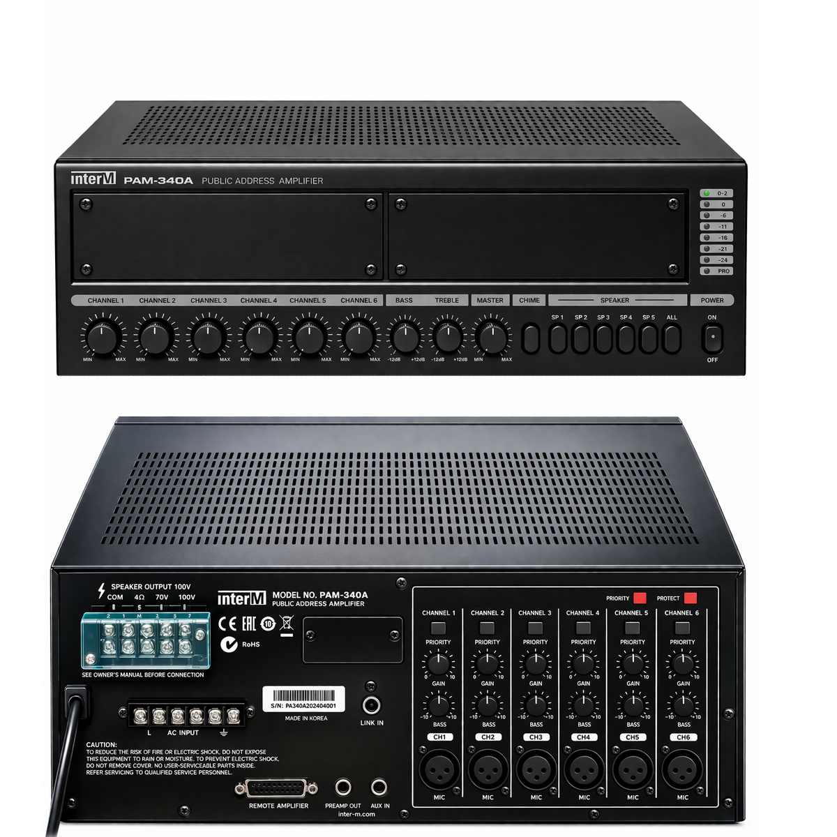 Inter-M PAM-340A – 70V/100V Output, 5-Zone Selector, Rackmount 340W Mixer Amplifier