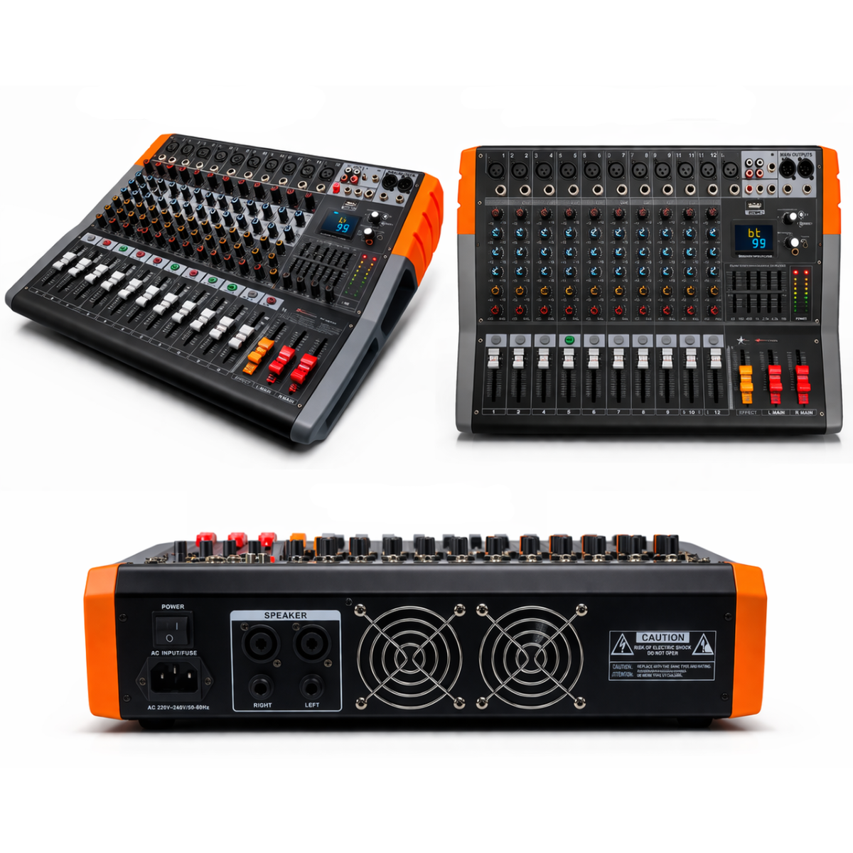 StrikingPower PM-12D1200 – 12-Channel, 2×600W, 99-DSP Effect Powered Mixer