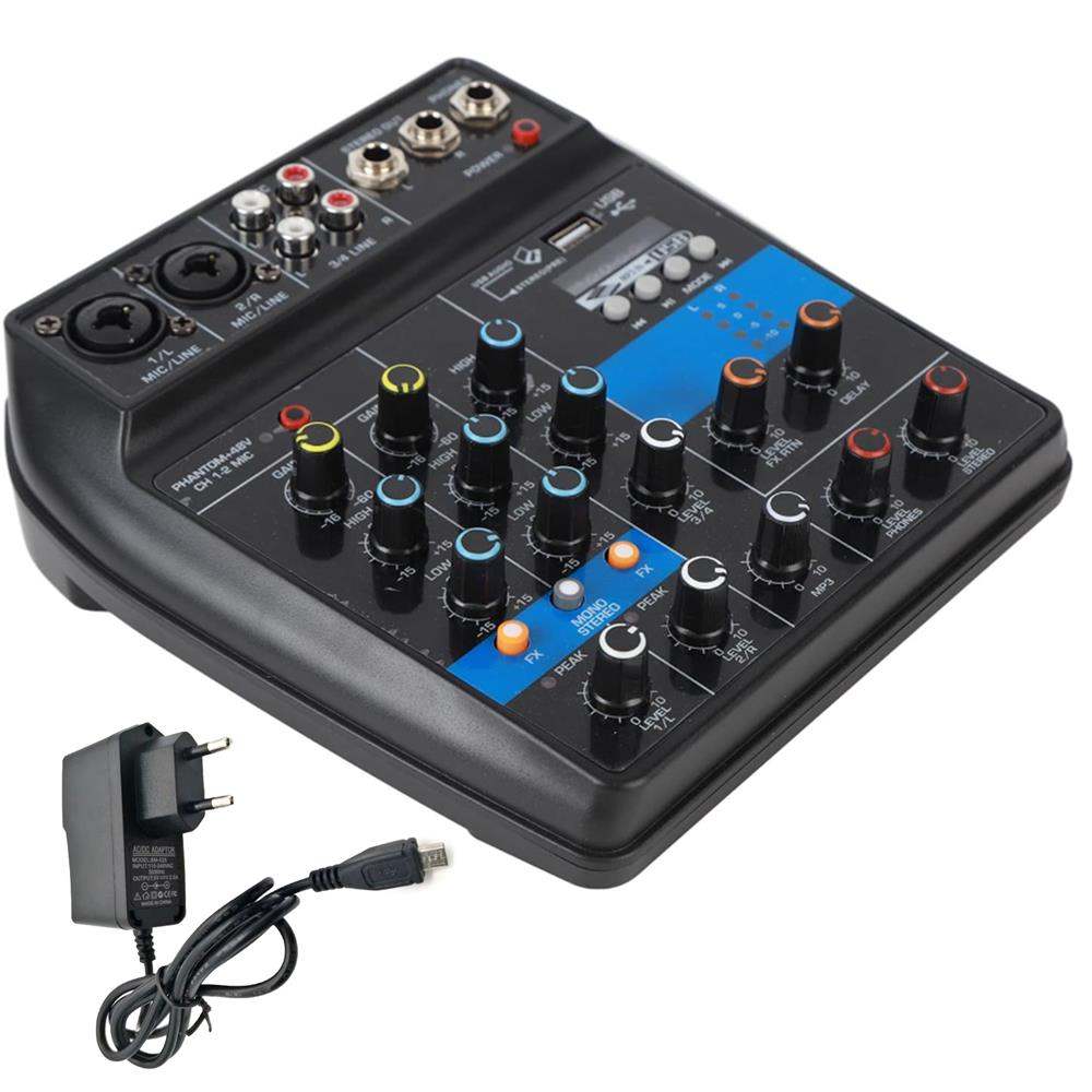 Derrica YM-4 – ميكسر صوتي 4 قنوات مع كرت صوت USB للتسجيل