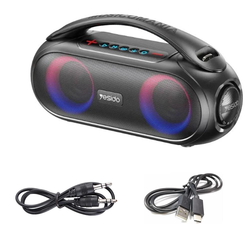 سماعة Yesido YSW19 محمولة لاسلكية بتقنية بلوتوث، قدرة 20 واط مع وحدتين داخليتين، بطارية 3000mAh وإضاءة RGB، تأتي بقطعتين لتوفير صوت ستيريو قوي.